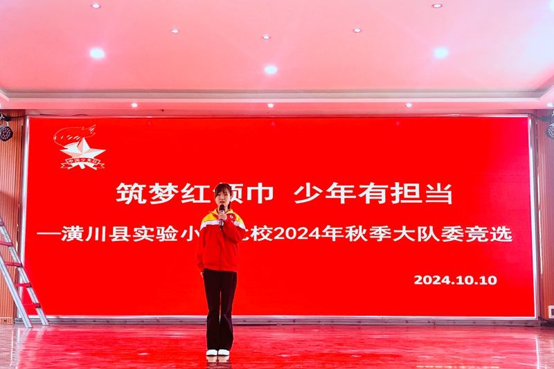 本网讯(赵威)为弘扬新时代优秀少先队员精神面貌,进一步加强少先队组织建设,发挥少先队大队委员的榜样示范作用,10月10日上午,潢川县实验小学教育集团北校2024年秋季大队委竞选活动在报告厅隆重举行。北校执行校长齐书红,各处室主任及90余名少先队员代表共同参加活动。本次活动由赵婧琦老师主持。