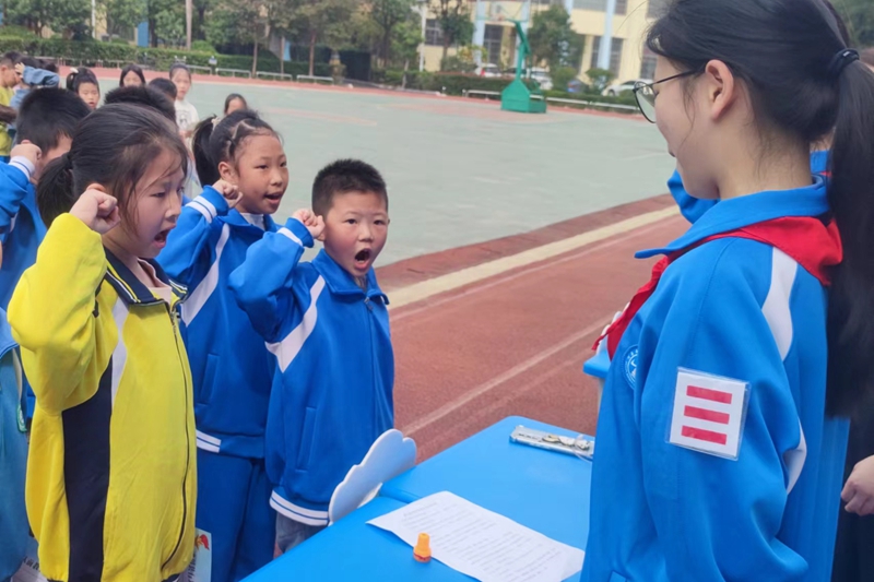 经过扎实的队前教育,10月10日,少先队大队委组织学生进行入队前考核。