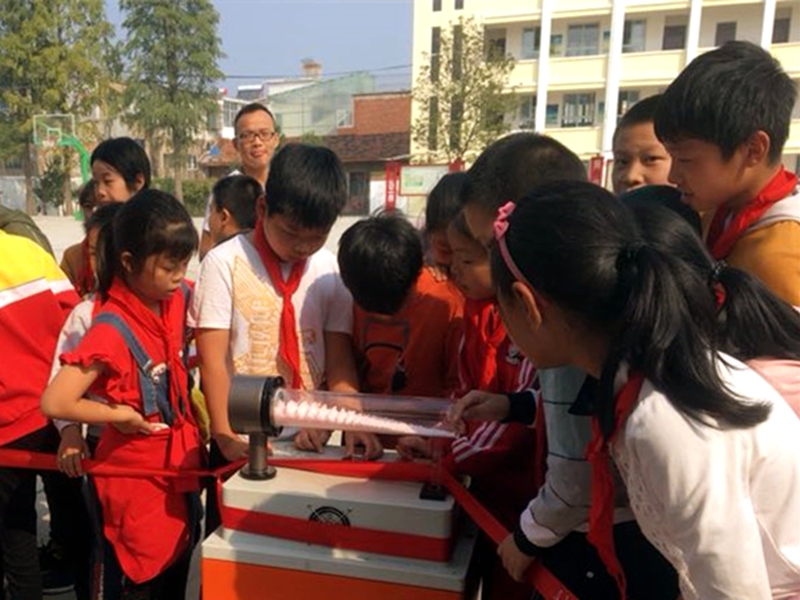 在“科技大篷车”讲解员热情的讲解下,二十多台科普仪器吸引了众多师生驻足体验。“无皮鼓”“异形齿轮”……让孩子们有了零距离的接触,开阔了视野,增长了知识。活动成功的举办,将学生们没有见到、听到、摸到的科技模型、科技展品带入学生们的生活中,让师生们在校园中足不出户亲身体会到了“科技的神奇”,激发了学生“学科学、爱科学、用科学”的热情,启迪学生科学思维,点燃创新梦想,营造了良好的科技教育氛围。
