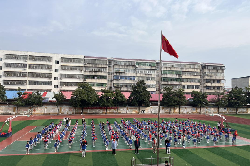本网讯(简珂)为深入贯彻落实共青团中央、教育部、全国少工委《关于构建阶梯式成长激励体系,增强少先队员光荣感的指导意见》,规范入队程序,有组织、分批次地吸收适龄少年儿童加入少先队,在中国少年先锋队建队75周年到来之际,10月10日,潢川县逸夫小学举行“红领巾爱祖国”二年级第二批新队员入队仪式。党支部书记丰国献,校长周卫等全体校领导及部分中队辅导员、少先队员参加本次活动。