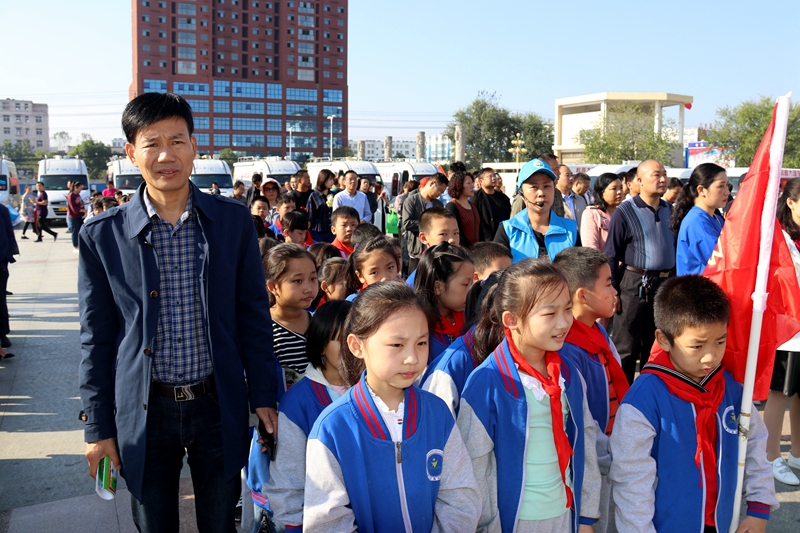 潢川网讯(张桂兵 牛保山)2018年9月27日上午,金风送爽,阳光明媚,潢川县逸夫小学在上级主管部门的统一部署下组织了近150名学生,排着整齐的队伍步行到县文化会展中心广场参加了河南省科普大篷车活动。逸夫艺术小学校长丰国献及学校教师志愿者一同前往。