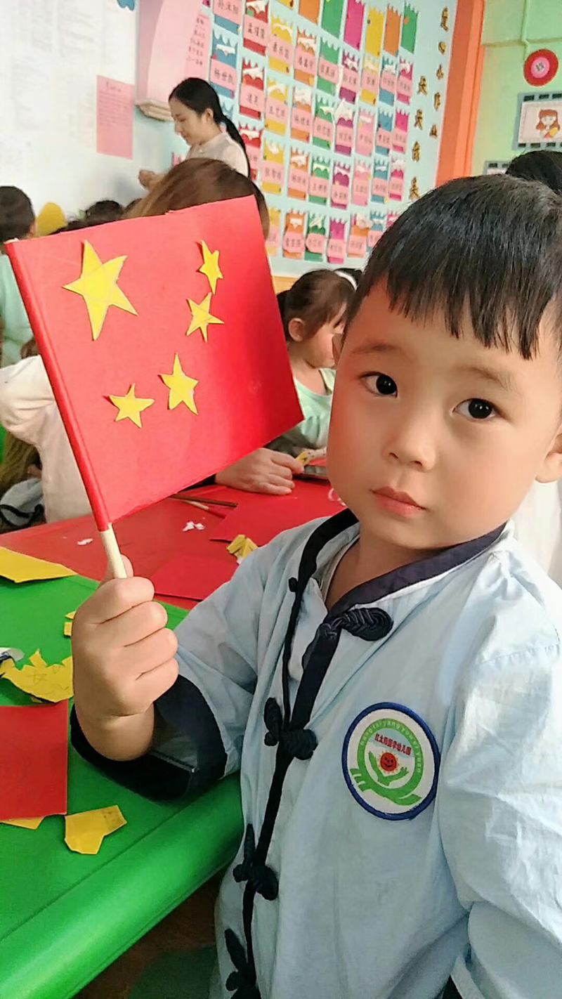 临近国庆节了,大班老师结合教材内容给孩子们上了一节丰富而生动的语言课“妈妈的名字叫祖国”,让孩子们对我们的祖国妈妈、对祖国的生日有一个初步的概念,并和家长一起动手给祖国妈妈做了一份生日礼物———五星红旗!