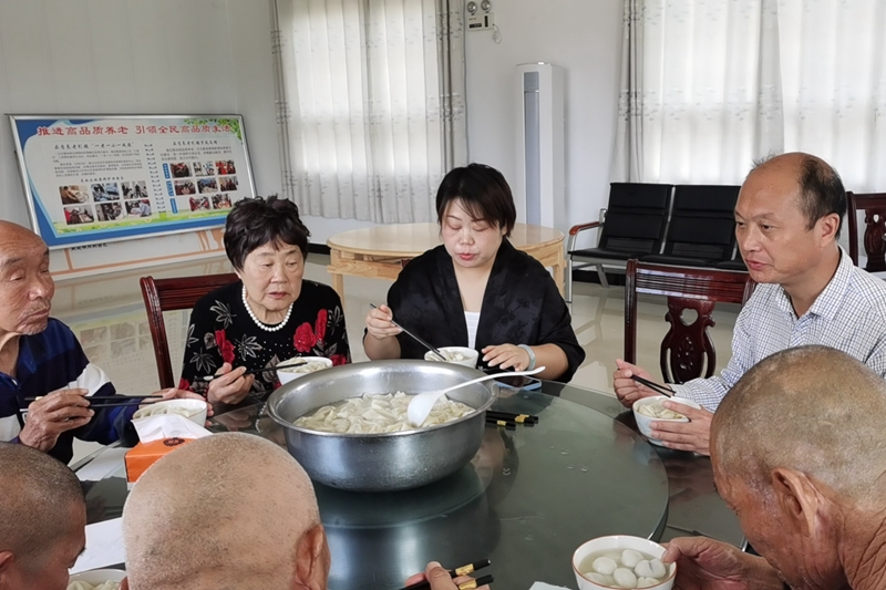 中午时分,镇宣传委员杨克瑛与行政审批服务中心王主任陪同老人们一起就餐,品尝志愿者们亲手包的饺子。餐桌上,欢声笑语不断,老人们的脸上绽放着幸福的笑容,他们与老人们亲切交谈,询问他们的生活情况和身体状况,叮嘱他们要注意保暖、保重身体、相互理解尊重关爱,共同营造和谐幸福家园。老人们纷纷表示,感谢党委政府的关心和照顾,让他们在敬老院里生活得安心、舒心。