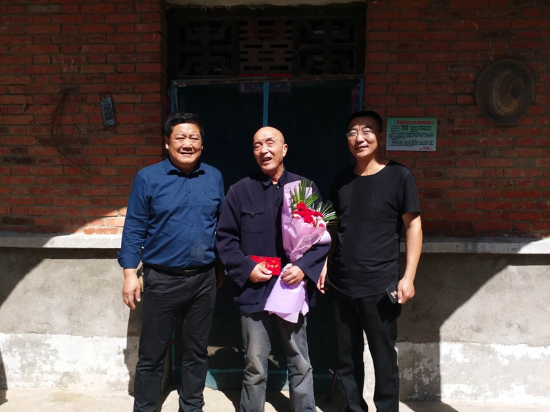 为烈士家属送上鲜花和500元慰问金