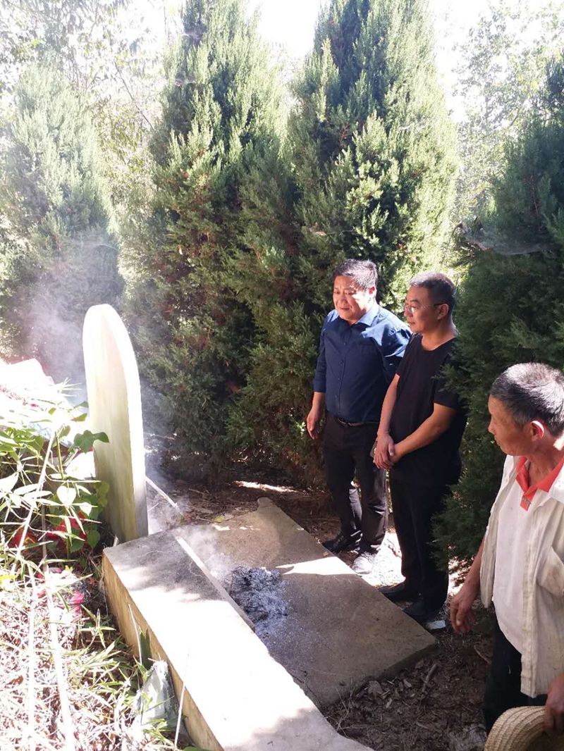 潢川网9月29日讯 2018年9月29日,在9月30日烈士纪念日到来前夕,受乡党委、政府委托,政府副乡长蒋得玉带领乡民政所工作人员前往潢川县白店乡辖区八座烈士墓开展祭扫活动,向在革命斗争中牺牲的白店籍烈士胡文胜、徐子元、李向贤等敬献花圈,缅怀革命先烈的丰功伟绩,弘扬先烈的崇高精神,并来到烈士家属刘寨村王业付家中,送上鲜花和500元慰问金。
