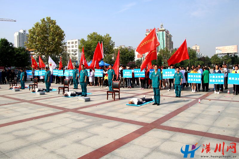 潢川网讯 9月30日由潢川县人民政府应急办、县卫计委、县红十字会联合主办,县人民医院、县中医院、县第二人民医院、县妇幼保健院、县疾病控制预防中心、县卫生计生监督所、120指挥中心承办的“全民自救互救卫生应急知识技能普及活动启动仪式”在弋阳广场举行。