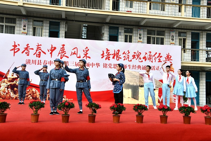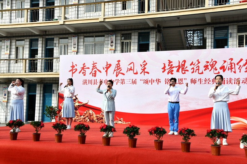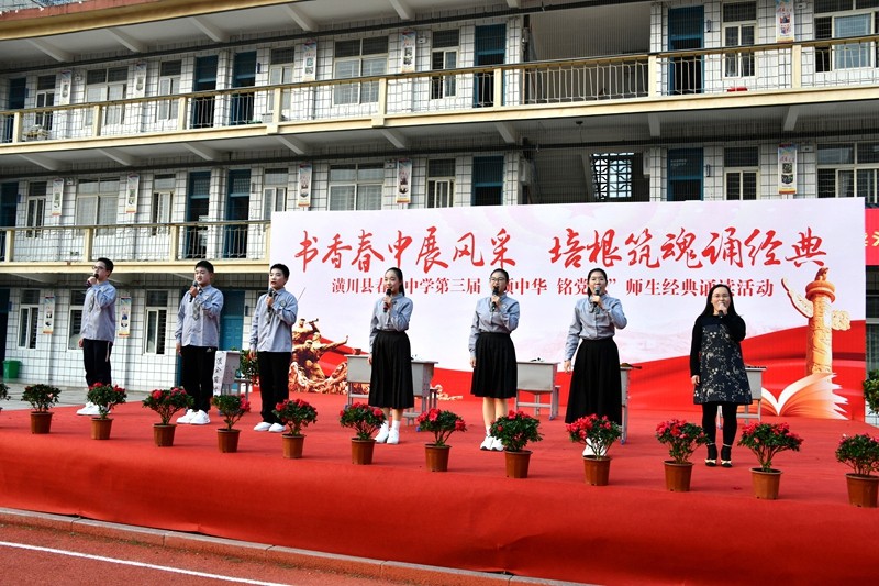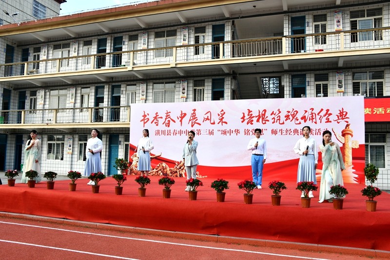 本网讯 2024年10月28日下午,潢川县春申中学第三届“颂中华 铭党恩”师生经典诵读活动在学校操场隆重举行。全校师生齐聚一起,共同沉浸在经典的魅力之中。