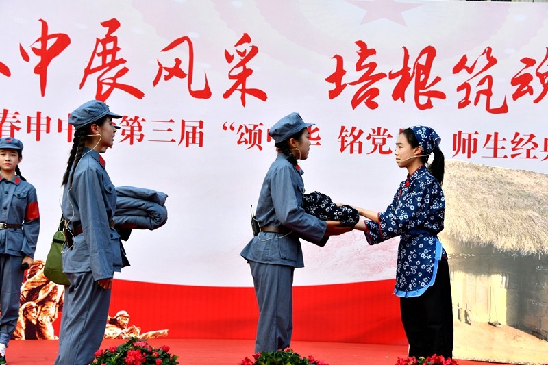 活动中,精彩纷呈的节目令人目不暇接。《觉醒年代》、《刘胡兰》、《半条被子》、《不朽的长征》、《红色家书》等节目,歌颂了党的丰功伟绩,弘扬了革命先烈的长征精神,表达了春申师生对党和祖国的赤诚炽热之爱;《读中国》、《中国话》、《灯火下的中国》、《诗意中国》等节目则展示了全体师生以国为荣、矢志奉献的民族自豪感;而《诗歌串烧》、《岳阳楼合唱》、《琵琶行》、《短歌行》、《盛世中华 荣耀75载》、《天地龙鳞》等节目多方位展现了诗情画意、馥郁芳香的中华优秀传统文化,令人陶醉。