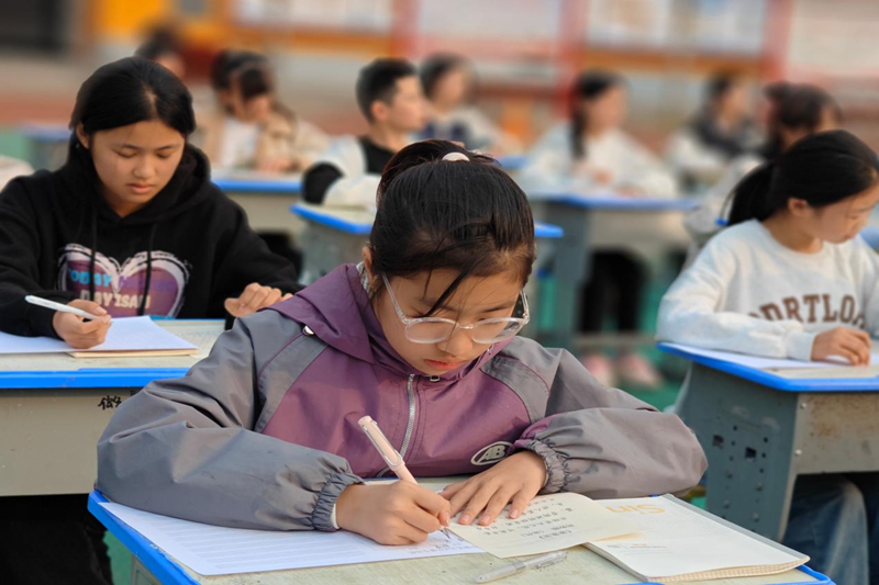一撇一捺展风采,一横一竖见真功。随着比赛的深入,学生们逐渐进入状态,他们时而凝神静气,时而挥毫泼墨,每一笔都凝聚着对书法的热爱和对比赛的认真态度。现场气氛紧张而有序,学生们在书写中展现了自己的风采和实力。