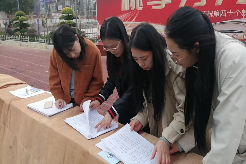 本次比赛由七年级年级主任孙海涛主持,支部副书记刘峻岭、副校长王承忠、政教副主任刘帅森、年级长陈永红出席活动。比赛评委团由杨继媛、李宜晓、朱玲瑞、陈红、邓海云五位老师组成,他们将秉持着公正、公平的原则,对参赛作品进行最终评判。