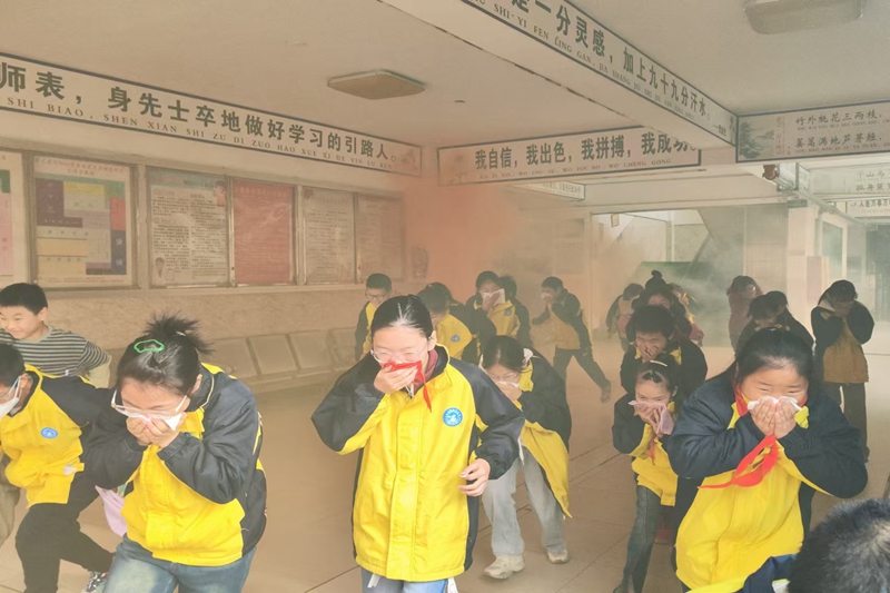 上午10时10分,学校执行校长黄维民宣布演练开始。随着警报声的响起,各班级反应及时,同学们捂住口鼻,俯着身快速离开教学楼,由班主任和中队辅导员有序组织疏散,集结至操场安全区并清点人数。