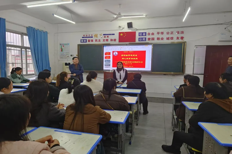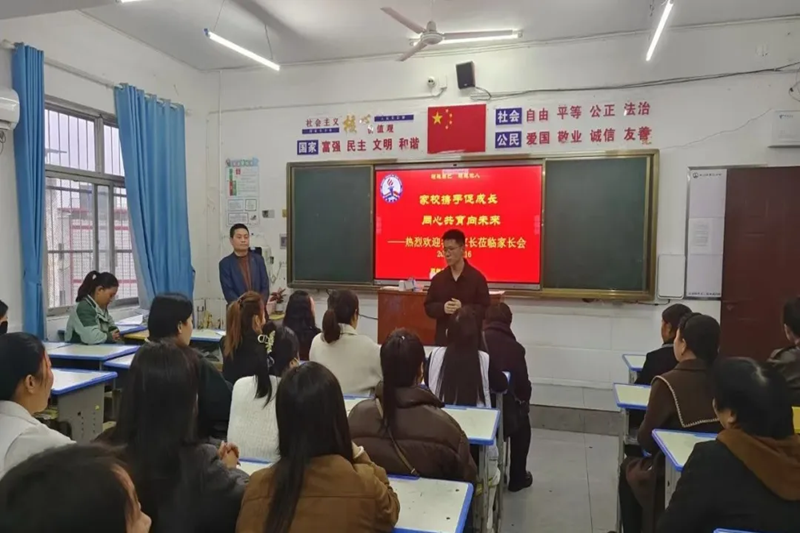 袁清术站在学校发展的宏观角度,深入剖析了学校目前的发展现状。他自豪地向家长们介绍了学校在教育教学改革、师资队伍建设、校园文化打造等方面取得的显著成绩,让家长们对学校的综合实力有了更全面的认识。同时,清晰地阐述了学生的培养目标,那是培养有理想、有道德、有文化、有纪律的新时代少年的宏伟蓝图。在这幅蓝图中,家校共育是关键的色彩。袁校长强调,家庭和学校是孩子成长的两个重要支柱,只有两者相互支撑、相互配合,才能让孩子在成长的道路上走得更稳、更远。他的话语如同一盏明灯,为家校共育的方向指明了道路,让家长们深刻认识到家校合作的重大意义。