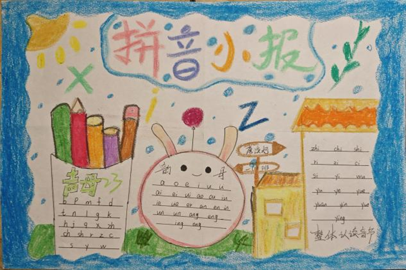 一年级的“拼音小达人”手抄报创作活动中,萌娃们充分发挥想象力。有的将字母画成了活泼可爱的小动物,旁边还配上了形象的拼音儿歌;有的则用五颜六色的画笔描绘出了拼音王国的奇幻景象,声母和韵母们手拉手,在精美的图案间跳跃。孩子们用稚嫩的笔触和纯真的创意,制作出了一份份充满童趣的手抄报,不仅巩固了拼音知识,还展现了无限的童真与活力。
