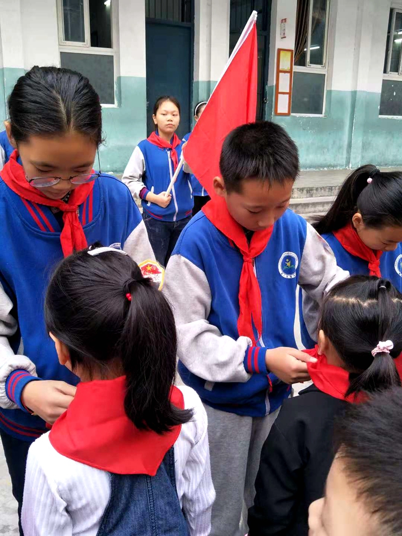 活动中,五、六年级的老队员为一年级的新队员佩戴上了鲜艳的红领巾,孩子们一张张小脸洋溢着激动与兴奋,在大队辅导员施俊娥老师的带领下宣誓:“时刻准备着,为共产主义事业贡献力量!”在音乐声中,新老队员们齐唱起铿锵嘹亮的队歌,老队员代表给新队员们提出了希望,树立了榜样;新队员代表也用稚嫩的声音表达了自己成为少先队员的喜悦和决心。学校校长丰国献同志对新队员表示祝贺,并对所有队员提出了希望:在学校做个好学生,在家里作个好成员,在社会做个好公民,为学校、为家乡、为我们鲜艳的红领巾增添光彩。