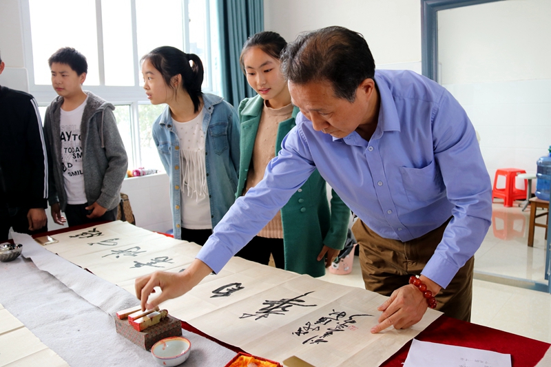 潢川书协书法家莅临马祖常学校开展文化交流活动