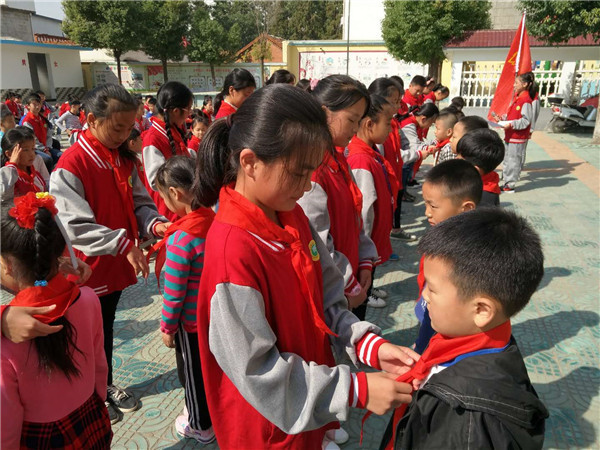 潢川网10月10日讯 (桂俊伶)为庆祝中国少年先锋队建队69周年,2018年10月10日上午,潢川回小全体师生齐聚学校操场,隆重举行 “争做新时代的好少年” 主题队会暨新队员入队仪式。