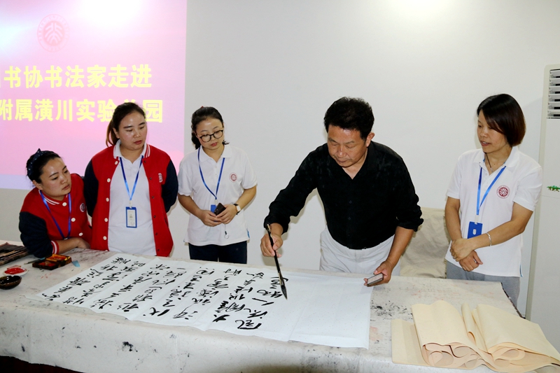 此次活动特邀县摄影家协会笛风、黄世忠等嘉宾莅临指导,园长对老师们的到来表示热烈的欢迎,并简介了本次活动。展出现场,采用幻灯片的形式,逐一展示了参赛教师的作品,笛风老师对每一副作品进行了赏析评鉴,并予以了充分的肯定和较高的评价。展出结束后,园所还邀请县书协詹志超、黄世忠两位书法家为老师们现场题字书写,为老师们送去文化大餐。