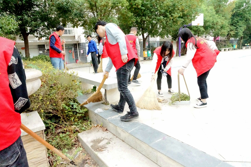 信阳工业学校志愿者走进社区开展卫生大扫除活动