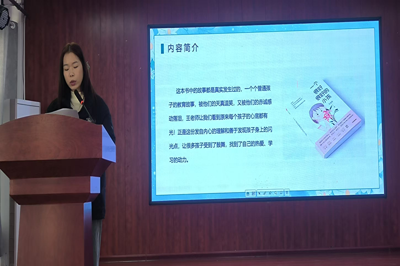 本次活动共有4名教师带来精彩的分享。沈新丽老师首先分享了《孩子你慢慢来》的阅读感受。她表示读完此书,明白了教育不是赛跑,教育是慢的艺术,想对所有的老师们、家长们说一声,多给孩子一点时间,一点耐心,教育孩子,请慢慢来。张雯雯老师带来的是《钢铁是怎样炼成的》的阅读体验。这本书给予了我恒久的力量,让我对生活、对工作有了坚持奋斗的勇气和毅力。彭倚榕老师给大家推介了《一个很好很好的小孩》这本书。读完这本书,让我更懂孩子。王悦薇老师处理各种问题和引导孩子的各种方法,让我深受启发。最后一位分享的熊爽爽老师带来了周明老师写的《在乎每一只鸟》。教育需要从守住初心出发,做好孩子的成长引路人,做到“目中有人”,“多把尺子量人”,让每一节课都弥漫着“鸟语花香”。熊老师如是说。