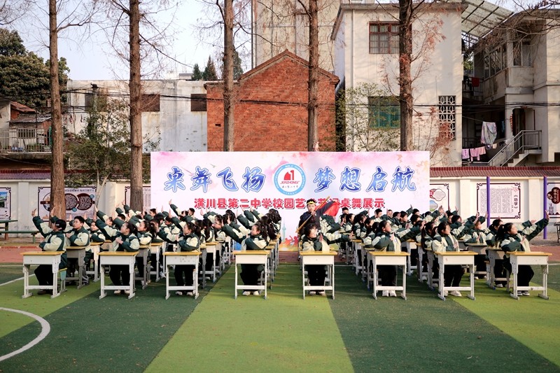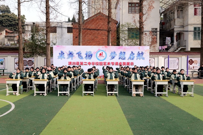 本网讯 为进一步激发学生的爱国情怀,丰富学生的课余生活,强健学生体魄,助力学生阳光健康成长,在2025新年来临之际,潢川二中七年级于2024年12月27日下午,在学校西操场举办了“桌舞飞扬 梦想启航”课桌舞展演活动。潢川二中支部副书记王国钰,副校长张思合、杨国志、高新建、彭启,支部委员蔡利军及七年级全体师生参加活动,活动由汪昊东、王锦雯、杨永鑫、郑好四位同学主持。