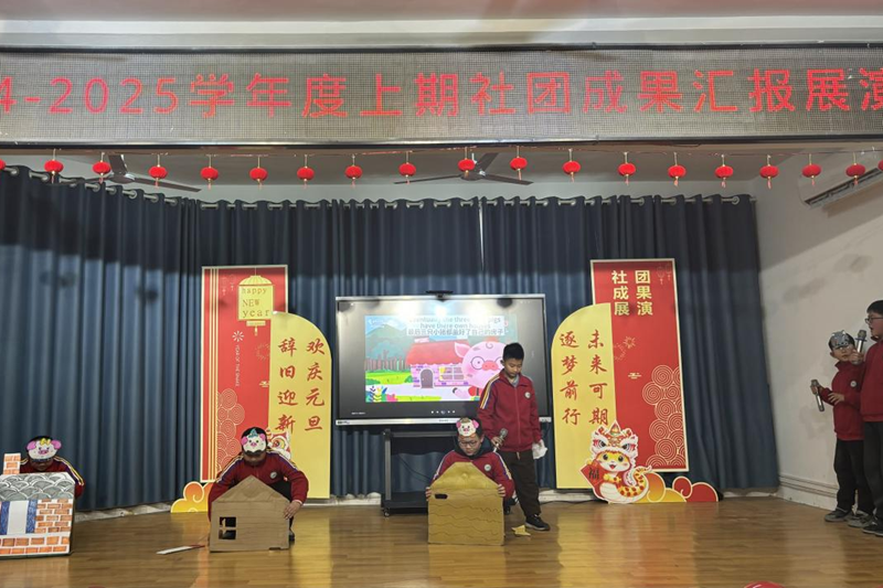 快板、相声、情景剧也展现了学生们的创造力和表演技巧。快板《庆元旦》让师生们通过相声的形式回顾校园生活中的点滴趣事,让展演活动充满了欢乐。相声《吹牛》通过幽默风趣的情节,展现了正能量与校园的和谐氛围。为了激发学生们对英语的兴趣,一段英语情景剧《三只小猪》将语言学习融入到情境中,让语言学习更富意趣。
