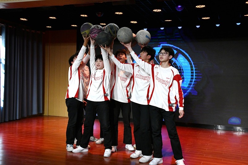 舞蹈社团的《上春山》舞步轻盈,春意盎然;《飒爽英姿》彰显青春活力,气势如虹;《民族舞串烧》带大家穿越文化长廊,感受多元风情;《我们都是追梦人》以舞追梦,激励人心。篮球足球社团的《Be My Basketball》韵律十足,动感无限。朗诵社团的相声《三句半》笑语连连,尽显机智。合唱社团的《梦向远方》歌声悠扬,为梦想引吭高歌。最后,在《相亲相爱一家人》的悠扬旋律中,校委会成员与演员们同台合影,留下了美好而珍贵的瞬间。