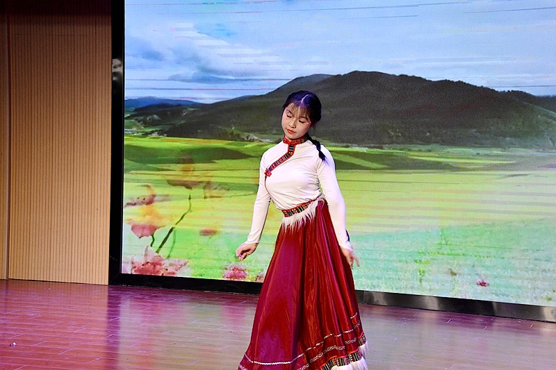 社团成果展示环节可谓高潮迭起。舞蹈社团的《万疆》以悠扬的旋律和璀璨的灯光,抒发了深沉的爱国之情,营造出庄重而热烈的氛围。朗诵社团与合唱社团合作的《这盛世如你所愿》深情回望历史,展现当下繁荣景象,圆了先辈们的梦想。