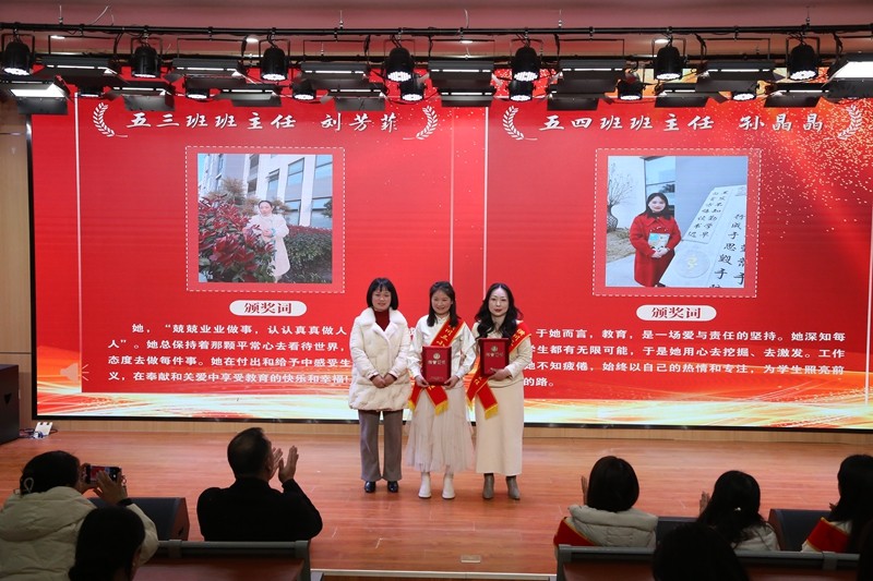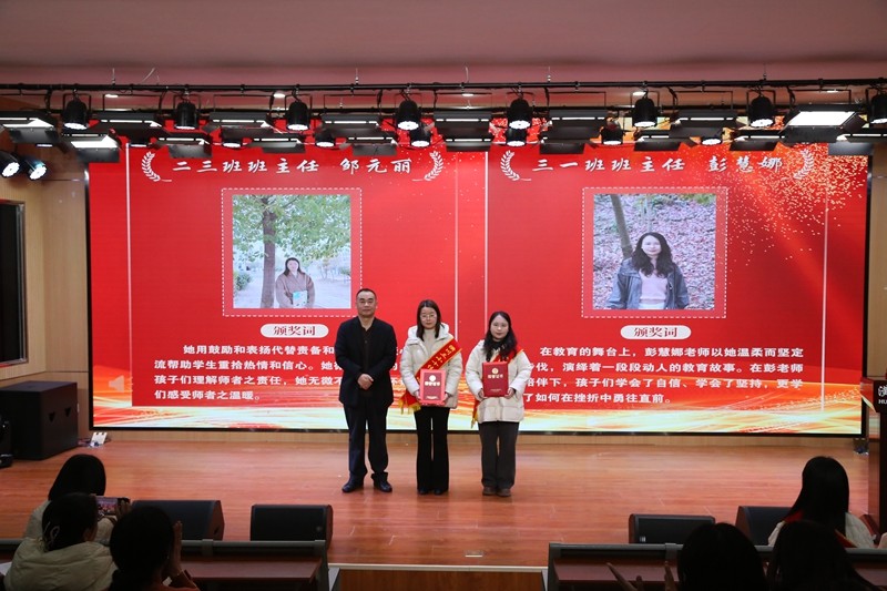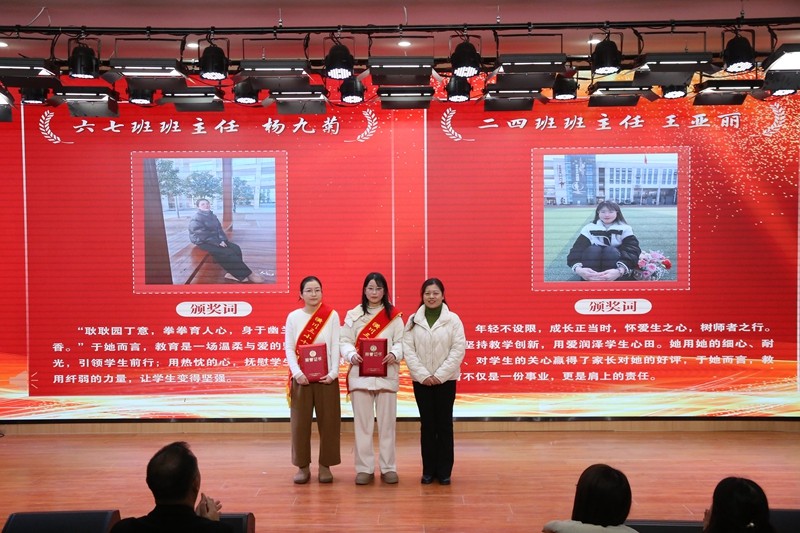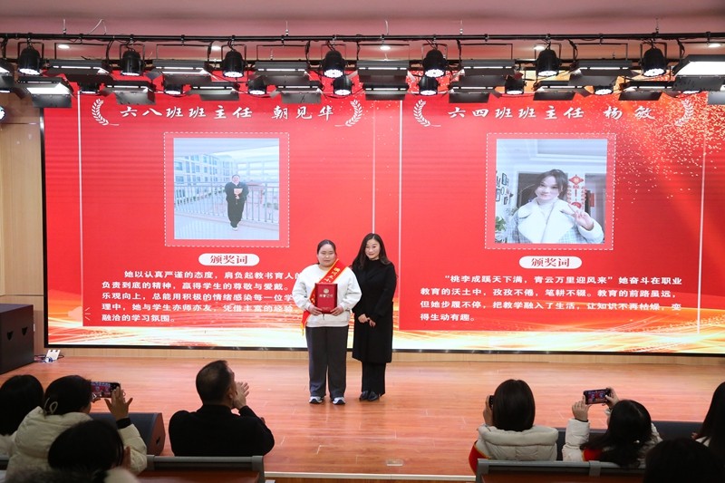 在热烈的掌声中,校领导为受表彰的班主任颁发了荣誉证书,并合影留念。这一刻,闪光灯与掌声交相辉映,定格了这份荣耀与喜悦。获奖班主任们脸上洋溢着幸福的笑容,这是对他们辛勤耕耘和无私奉献的最好回馈。