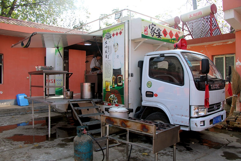 流动餐车为老人们现场加工午餐