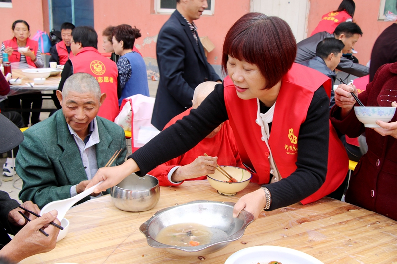 一大早,隆古四合院光州家宴进万家还开来了流动餐车,为老人现场加工营养丰富、美味可口的午餐,志愿者们还共同为老人包饺子。潢川县戏协和文艺志愿者们为老人表演了精彩的节目。活动现场同步开展了爱心理发、健康义诊等便民志愿服务,中午时分,志愿者们和老人们一起共进午餐。