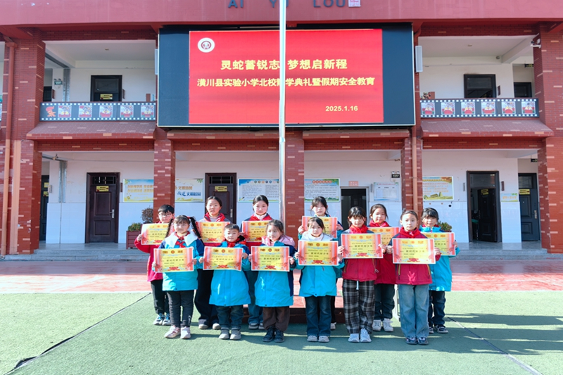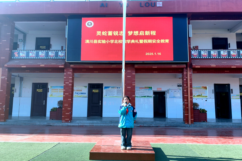 本网讯(赵威)日月其迈,岁律更新。为表彰优秀,鼓励先进,涵养学风,全面总结本学期工作,提高学生安全意识,2025年1月16日下午,潢川县实验小学教育集团北校举行2024-2025学年度上期散学典礼暨假期安全教育大会。典礼由北校大队辅导员赵威主持。
