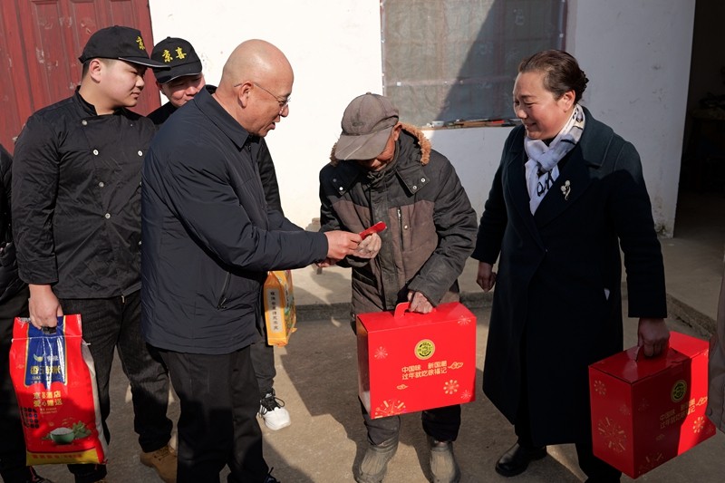 本网讯 2025年1月18日,在新年即将到来之际,潢川县周文化研究会携手爱心企业天福顺购物广场、京喜酒店深入部分乡镇走访慰问困境宗亲家庭,为他们送去了冬日的温暖和新年的祝福。县周文化研究会会长周兴志、天福顺购物广场总经理王素华、京喜酒店总经理曹胜利等爱心人士参加活动。