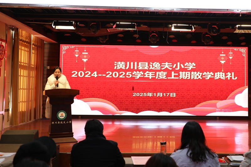 本网讯(刘倩)冬日的寒风渐息,学期的尾声悄至,寒假的脚步在期待中临近。2025 年1月17日,潢川县逸夫小学举行了2024—2025学年度上期散学典礼,为这一学期的辛勤耕耘画上了圆满的句号。典礼由办公室主任张宏丽主持。