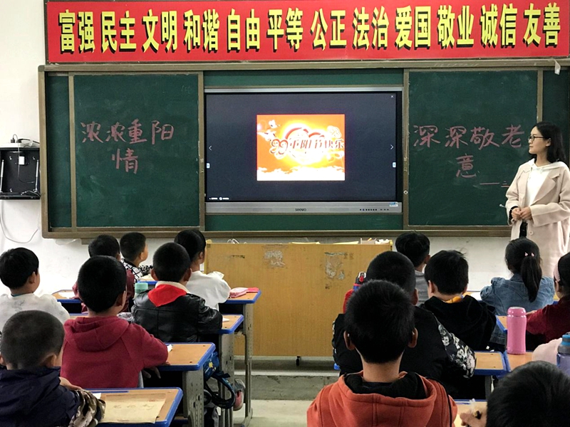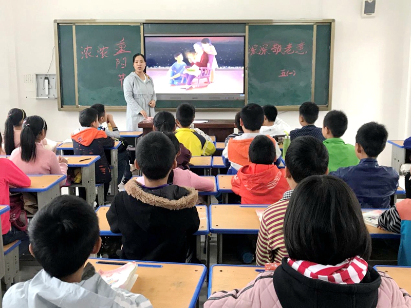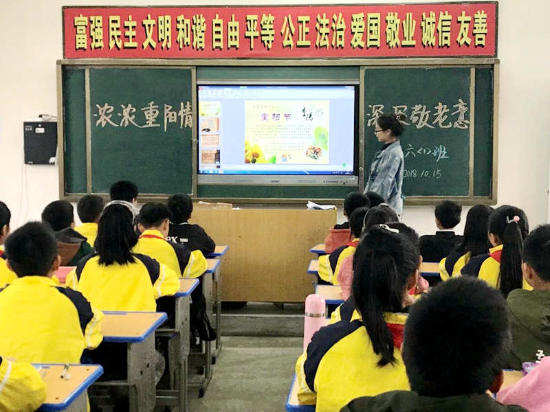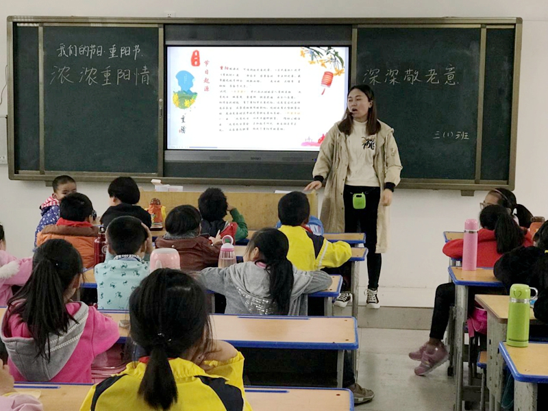 首先,全校16个班级利用班会,由班主任向学生们讲解重阳节的来历、习俗以及重阳节的寓意,借此向同学们普及我国的传统文化知识;其次,要求学生收集一些关于重阳节的古代诗词,并且帮助学生讲解其中的含义;最后,让学生按照活动要求,回家帮助家长做一件力所能及的事情,并将图片发送到各个班级群中。
