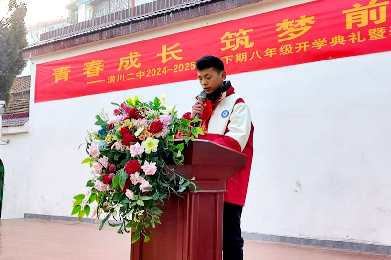 本网讯 2月18日上午,潢川二中八年级在操场举行主题为“青春成长 筑梦前行”的2024-2025学年下期开学典礼。副校长张思合、年级主任代一功、王建林、陈金玉、章健及全体八年级师生参加活动。会议由团委书记雷超云主持。