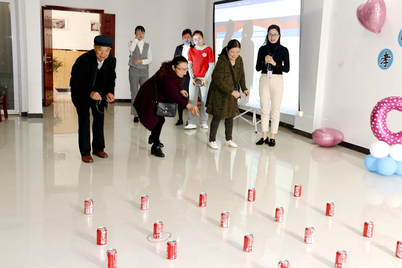 在子女们的簇拥下老人们和大家一起参加了“夕阳增辉赛”趣味活动。活动的项目根据大众化适合老年人的游戏运动形式开展,有时尚的“百变魔力球”、技能比赛从“穿针引线”“剥橘子” 互动小游戏《套圈夺宝》,更是把老人带回了童年,畅享游戏独特的魅力,将整个活动推向了高潮。