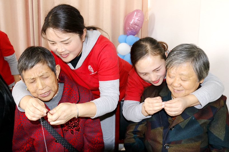 子女协助父母或长辈“穿针引线”