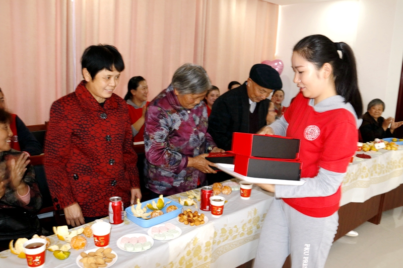 向老人们赠送重阳礼物