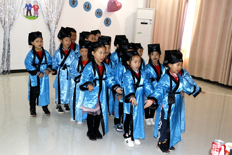 “孝亲答谢”家园共育环节,幼儿代表诵读国学经典,可爱的小司仪们为老教师们敬献鲜花;既展示了幼儿的风采,又传达了对长辈浓浓的敬意。轻松的座谈中,大家畅所欲言,幼儿园的以前、现在、教师的活力、卫生膳食、安保的责任心等等都成为了大家交流和感慨的话题。最后在“老少一家亲”欢快的乐曲声中,园内向老人们赠送了重阳礼物,共赏了书法作品“百寿福字图”,以表全体教职工敬意。大家幸福相聚,合影留念美好瞬间。