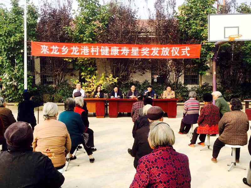 潢川县来龙乡龙港村举行孝善基金健康寿星奖发放仪式