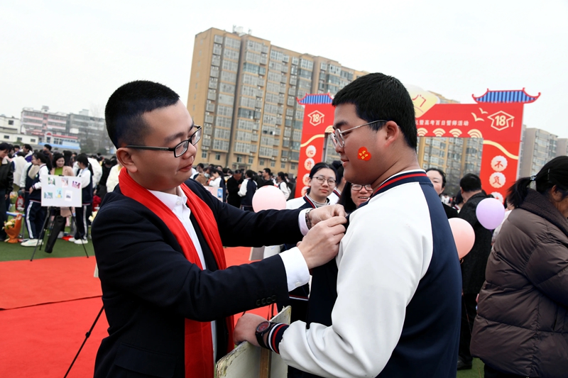 家长和老师们亲手为学生佩戴成人徽章,随后与学生亲切拥抱,送上最真挚的祝福与鼓励。一枚枚徽章,象征着同学们步入成年,开启人生全新的篇章。