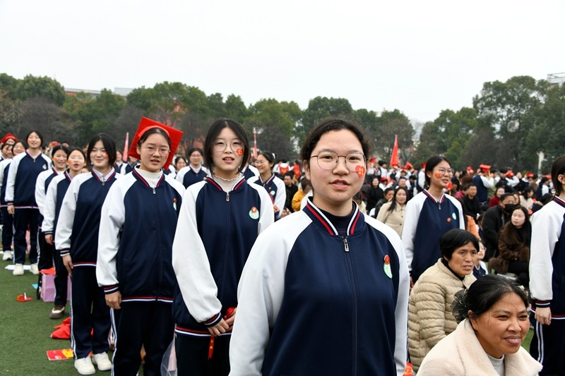 随后的班级宣誓环节将现场气氛推向高潮。各班同学在主席台前整齐列队,高高举起班级横幅,高呼冲刺口号。一句句誓言震耳欲聋,喊出了同学们冲刺高考的坚定决心与昂扬斗志,展现出破釜沉舟的勇气与志在必得的信心。