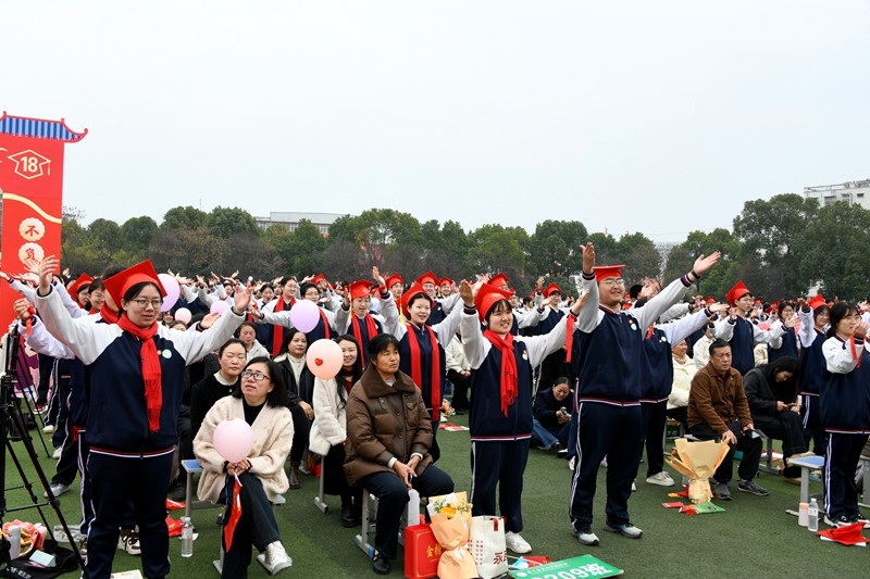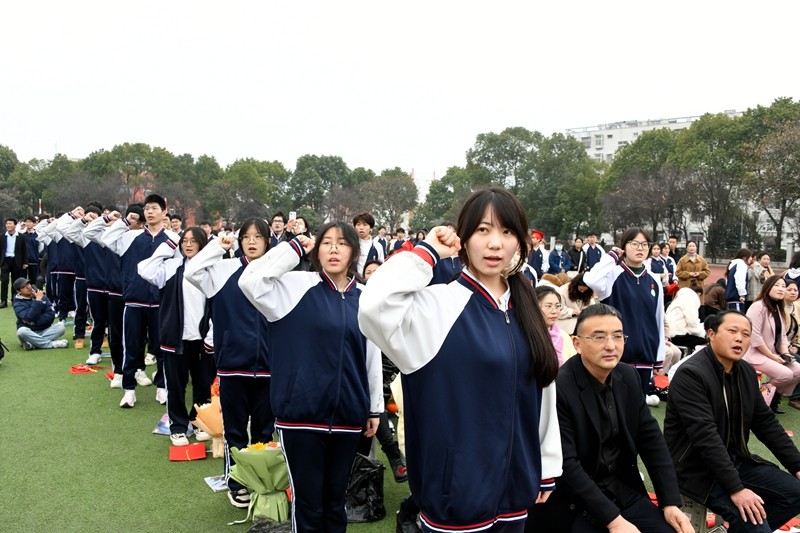 随后,全体学生在主持人的带领下,右手握拳,庄严宣誓。他们誓言铿锵,承诺将勇担成人责任,奋力拼搏,不负青春韶华,以奋斗铸就未来。
