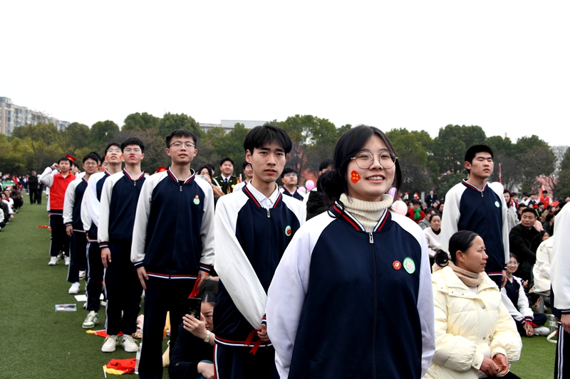 上午8时,校园内班旗烈烈,班牌熠熠,横幅飘飘。各班方阵整齐排列,同学们身着整洁校服,身姿挺拔,迈着铿锵有力的步伐有序入场。他们目光坚定,口号声震彻云霄,将青春的蓬勃朝气与对未来的炽热憧憬彰显得淋漓尽致。一面面班旗,承载着班级的荣耀与梦想;一条条横幅,书写着同学们的壮志豪情,彰显着青春的无畏与果敢。