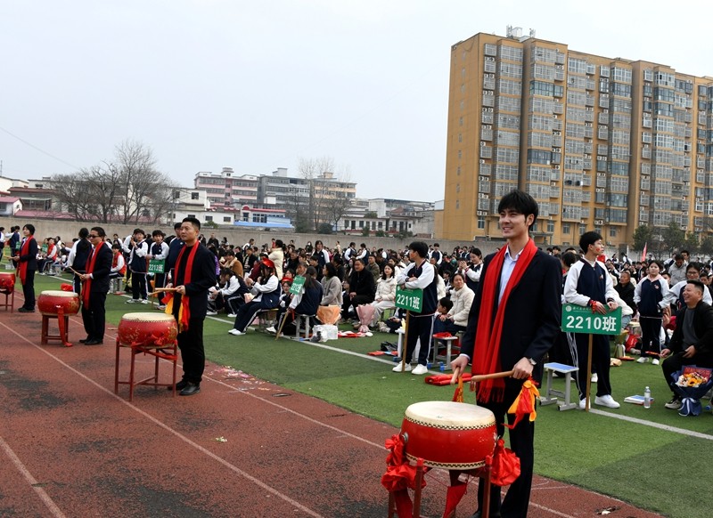 18位班主任手持鼓槌,来到班级前的大鼓旁,奋力击鼓,为学生们加油助威。激昂的鼓声如战鼓催征,激发了学生们的昂扬斗志,让他们充满奋进的力量。