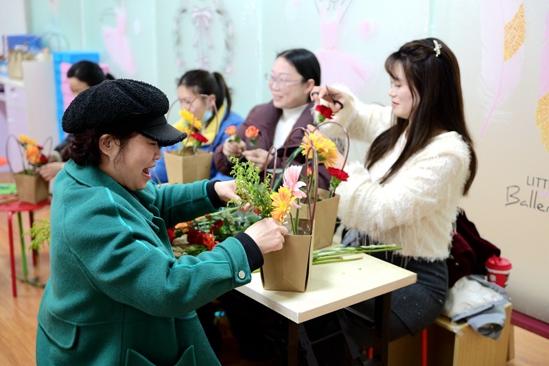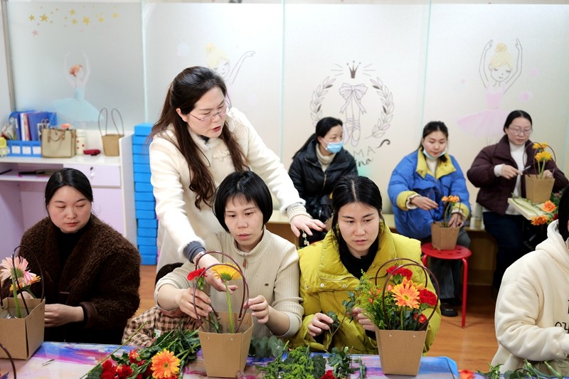 活动现场,邝老师首先从花道文化的深厚内涵入手,系统阐述了倾斜式插花与花篮造型的设计妙理。通过色彩搭配的巧妙运用与空间层次的实践教学,引导参与者在花香四溢的氛围中,细腻感受植物生长的自然韵律,深刻领悟“一花一世界”的艺术哲学。尤为值得一提的是,“母亲花”康乃馨的专题创作环节,让学员们亲手制作感恩花篮,深切体会到母爱与生命的紧密相连,情感共鸣愈发强烈。