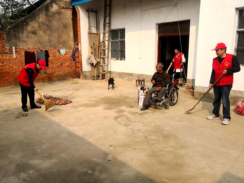 为帮助贫困户提升人居环境,志愿服务队深入贫困户家中,开展大扫除活动,从房前到屋后,从室外到室内,经过一番清扫,贫困户家变得干净整洁了,贫困户脸上乐开了花,连声道谢,志愿者们也是满心的喜悦。