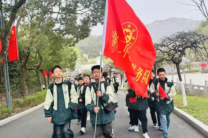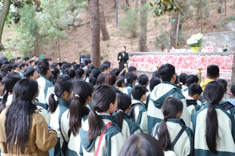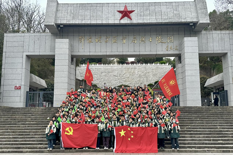 在英烈广场上,团委书记雷超云带领同学们庄严宣读入团誓词。铿锵有力的誓言在陵园上空回荡,表达了同学们对党的忠诚与对革命事业的坚定信念。七(18)班曹馨月、杨永鑫两名同学分别作表态发言,号召全体同学将对党、对祖国的热爱转化为实际行动,让青春在实现中华民族伟大复兴的征程中绽放光彩。