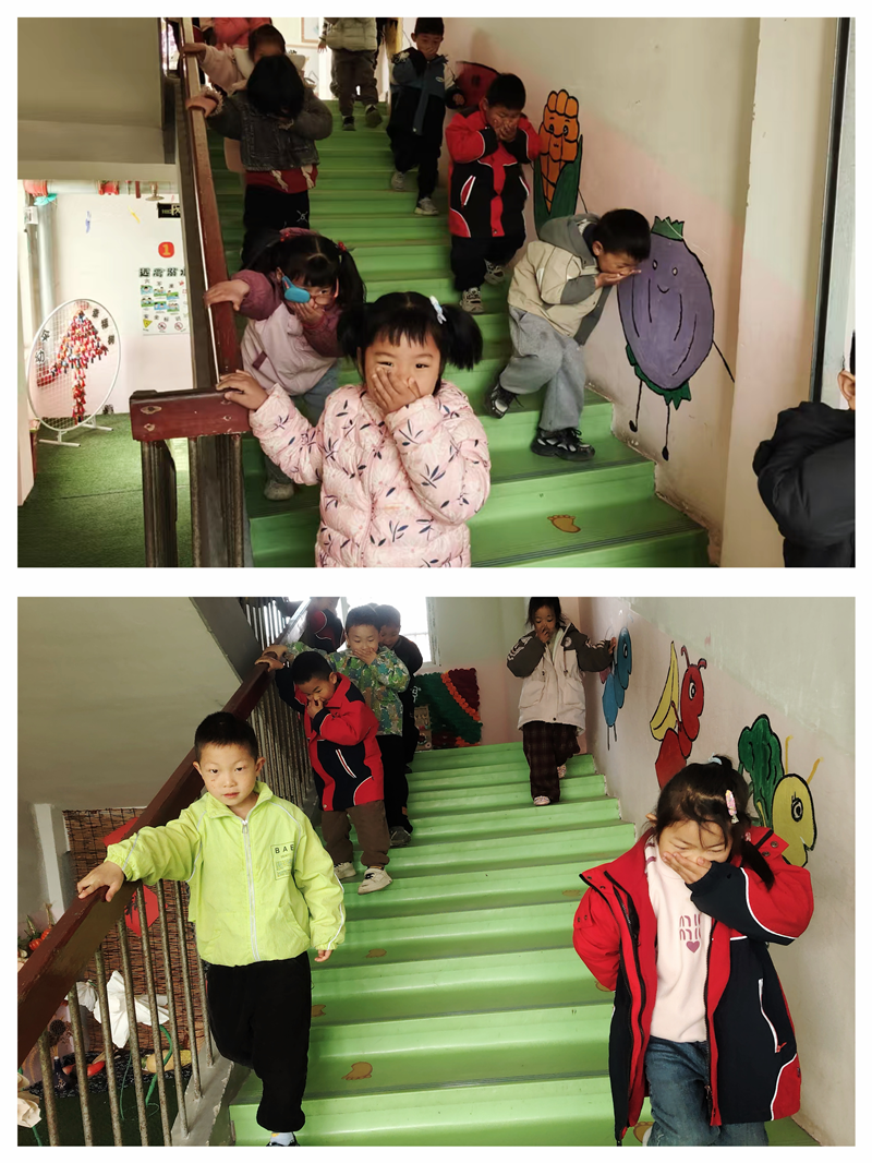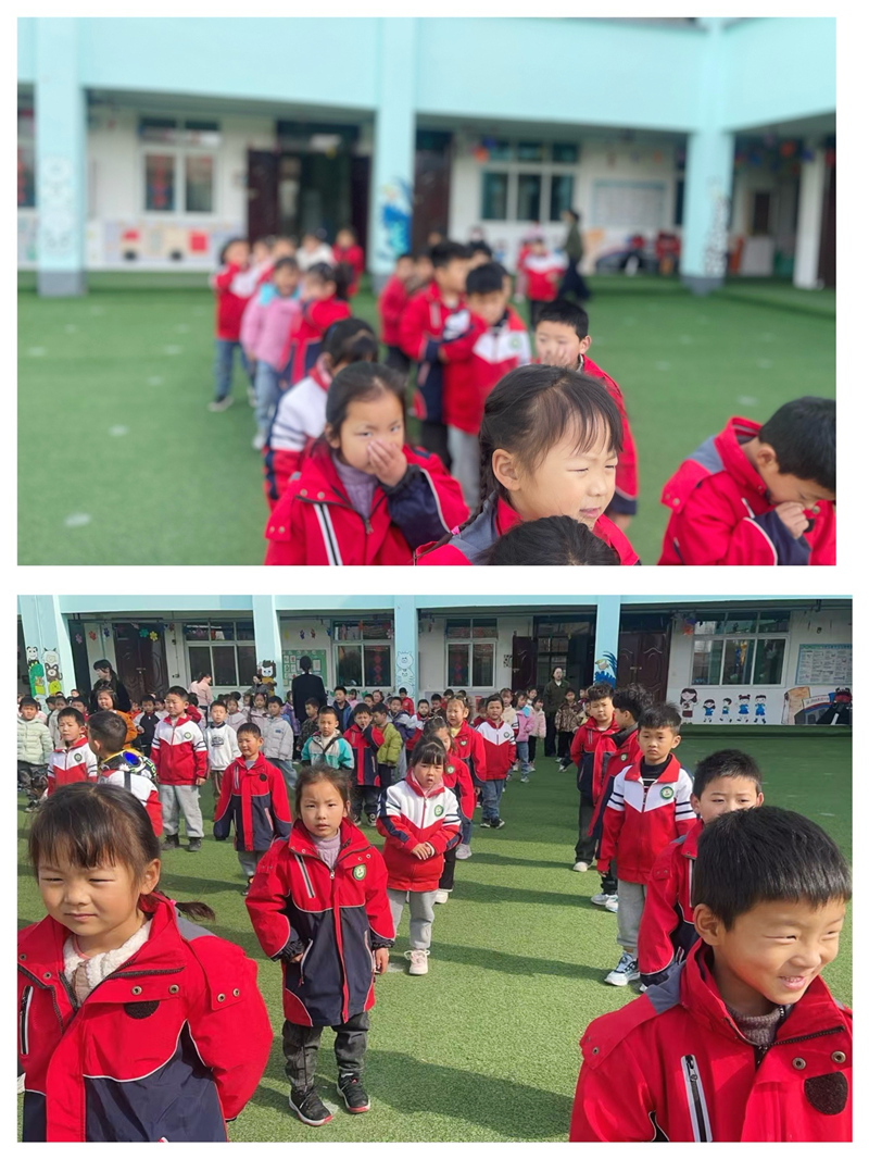 演练模拟了教学楼突发火情的紧急场景。警报声骤然响起,各班教师迅速反应,立即组织幼儿用湿毛巾捂住口鼻,弯腰沿着预先设定的疏散路线,快速且有序地撤离至操场安全区域。保健医生全程携带急救箱在一旁待命,随时准备应对可能出现的突发状况;后勤人员迅速对现场进行断电排查,确保无安全隐患。整个演练过程紧张而有序,所有幼儿及教职工均安全疏散,仅用时2分15秒,达成了“快速、有序、零意外”的演练目标。