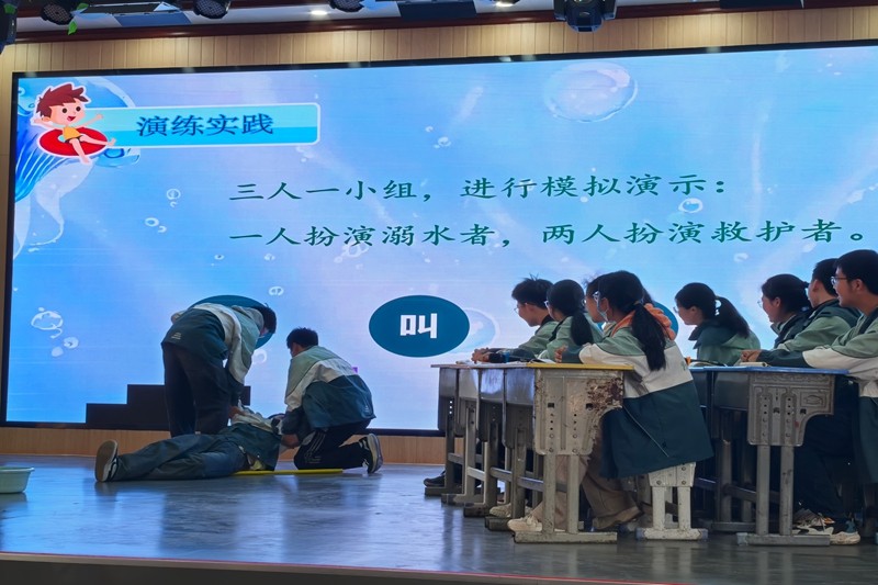 学生们积极参与“模拟溺水”和“救助他人”的情景演练,通过实践学习科学的自救方法和施救技巧。班会结束后,学校还发起了“防溺水承诺签名”活动,以庄严的仪式感进一步深化学生的责任意识,让防溺水安全理念深入人心。